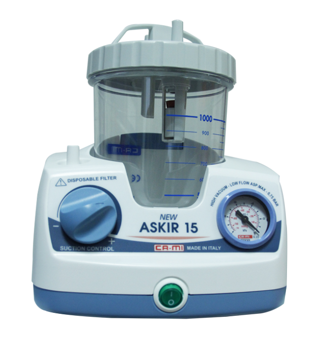 Aspirador de Secreciones CA-MI New Askir 15 con Frasco de 1000 ml de Policarbonato MAKROLON® 2858 flujo máximo 15 l/min