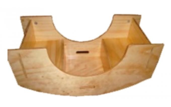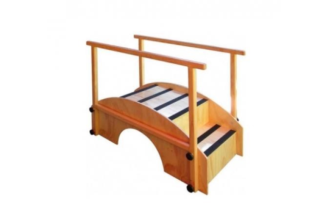 Balancín multifunción fabricado en madera de pino, barnizado en color natural. Tiene tres funciones: balancín, cuneta y escalera.