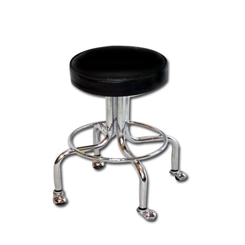 Estructura en tubo redondo cal. 18 de 1” acabado cromo, asiento tapizado de 30 cm de diámetro x 7 cm de espesor, ruedas de yoyo de 2” variable de 53 a 65 cm