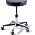 El taburete para médico Ritter 274 figura una base de 5 puntos y columna de aluminio. La altura de este taburete se ajusta manualmente de 46 cm. a 62 cm.