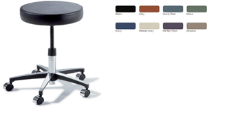 El taburete para médico Ritter 274 figura una base de 5 puntos y columna de aluminio. La altura de este taburete se ajusta manualmente de 46 cm. a 62 cm.