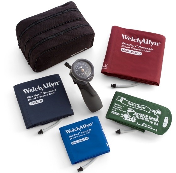 SET DE TENSIÓMETRO Y BRAZALETES MÚLTIPLES FLEXIPORT®, BRAZALETES DE UNA PIEZA PEDIÁTRICO CON DISEÑO INFANTIL, PARA ADULTO PEQUEÑO, ADULTO Y ADULTO GRANDE CON ESTUCHE FLEXIBLE
