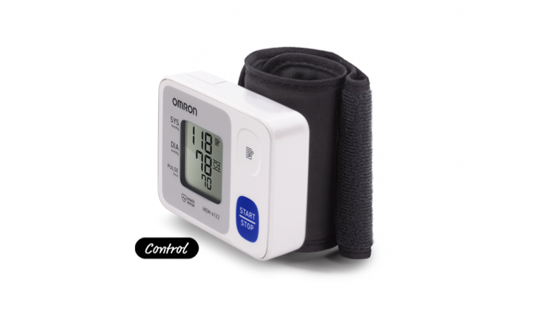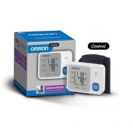 El monitor de presión arterial de muñeca automático Omron Control es compacto, silencioso y cómodo. Posee un sensor de posición que ayuda a guiar la muñeca hasta el nivel del corazón para obtener mediciones más exactas.