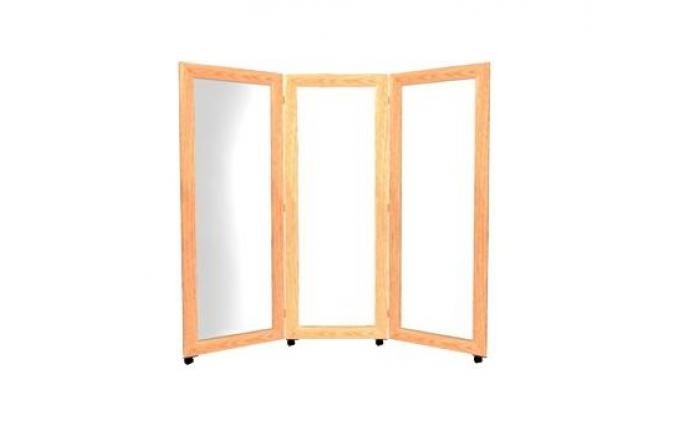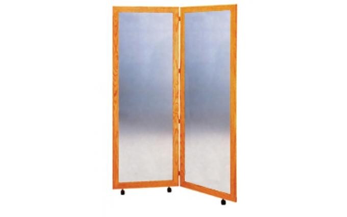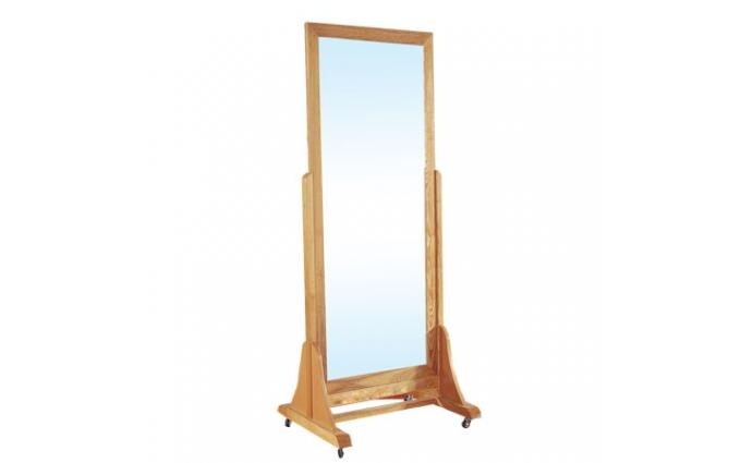 Espejo de postura con ruedas para un fácil desplazamiento, fabricado en madera de pino, luna de 4 mm., base soporte de manera de pino.