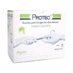 Guantes para cirugía de látex. Consiste de guante derecho y guante izquierdo compuestos con un borde o enrollamiento en el extremo del antebrazo. El pulgar se encuentra de lado opuesto de los otros dedos.