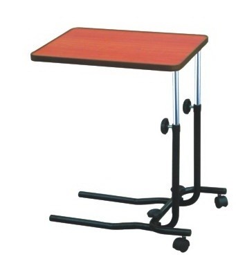 MESA PUENTE CON BANDEJA FIJA CAFE ALTURA AJUSTABLE C/PERILLA BASE C C/2 RUEDAS