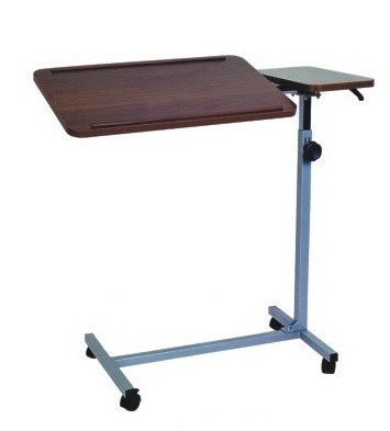 MESA PUENTE CON BANDEJA FIJA CAFE ALTURA AJUSTABLE C/PERILLA BASE C C/4 RUEDAS