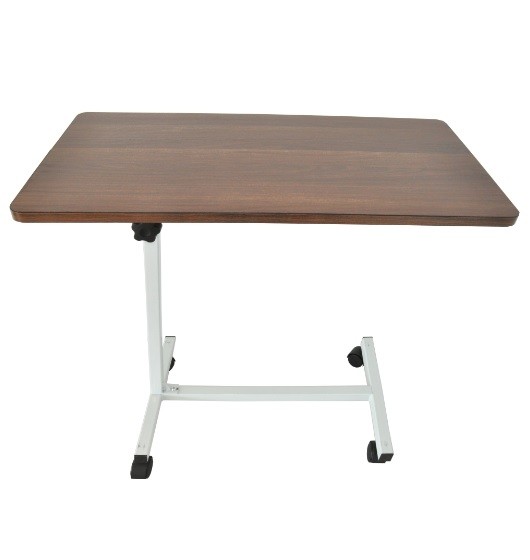 MESA PUENTE CON BANDEJA FIJA CAFE ALTURA AJUSTABLE C/PERILLA BASE H C/4 RUEDAS