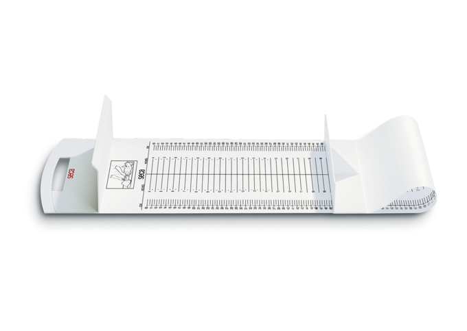 Se trata de una solución ligera, que requiere poco espacio y que permite medir la talla de bebés y niños pequeños acostados, fácilmente y con precisión. La pieza fija de la cabeza y el tope deslizante para los pies simplifican su uso.